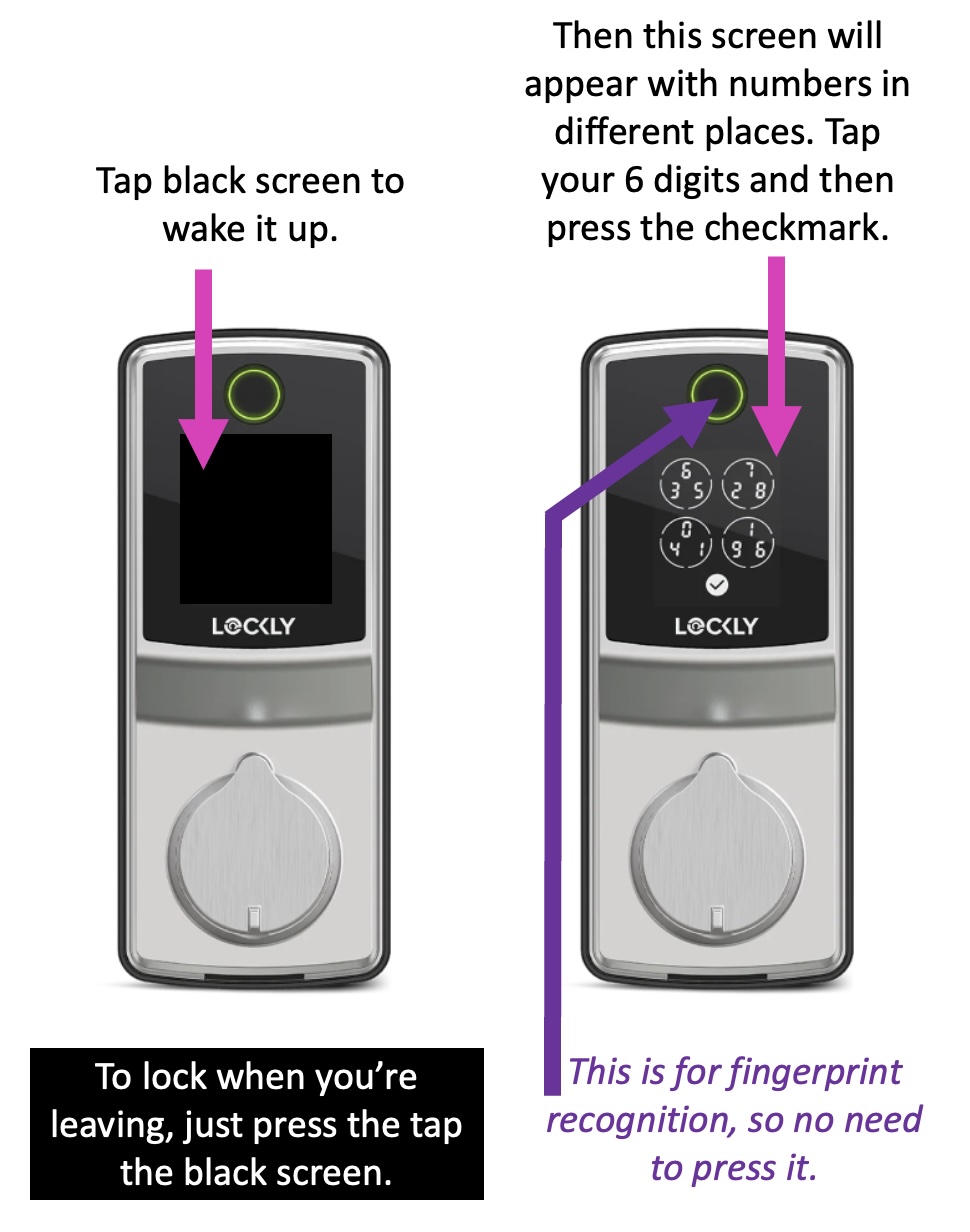 - Your 6-digit code will be given to you when we speak prior to arrival. Directions in this pic: